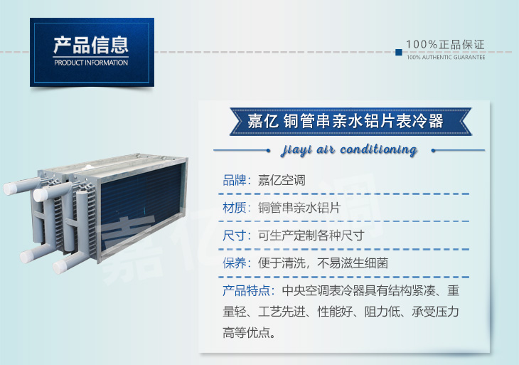1: 表冷器汇管材料可以是镀锌钢管,也可以是铜管或是不锈钢管,表冷器翅片可以是普通铝箔,也可是亲水铝箔;表冷器端护板可以是镀锌板也可以是不锈钢板。