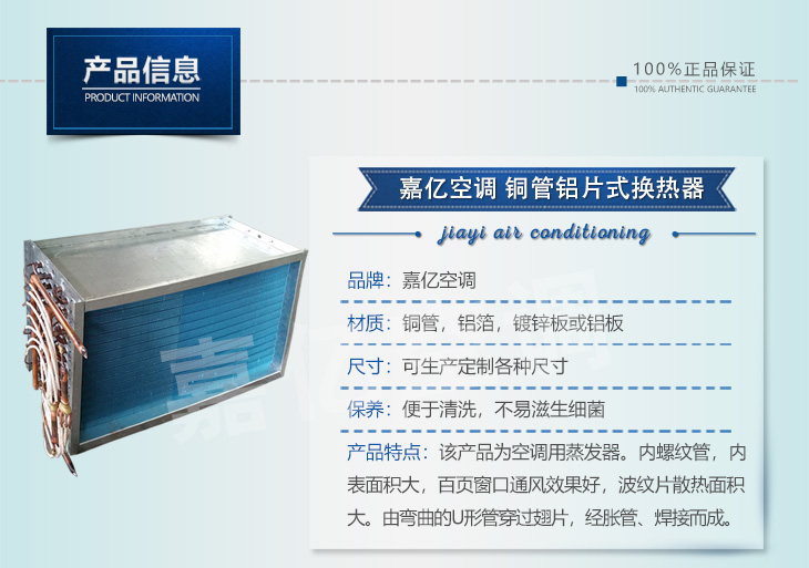 您好!欢迎来到靖江市嘉亿空调设备制造有限公司官网! 表冷器系列 、加热器系列 、不锈钢蒸发器 、冷凝器 、 生产厂家
