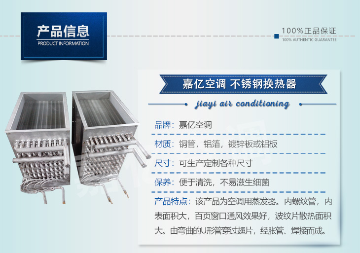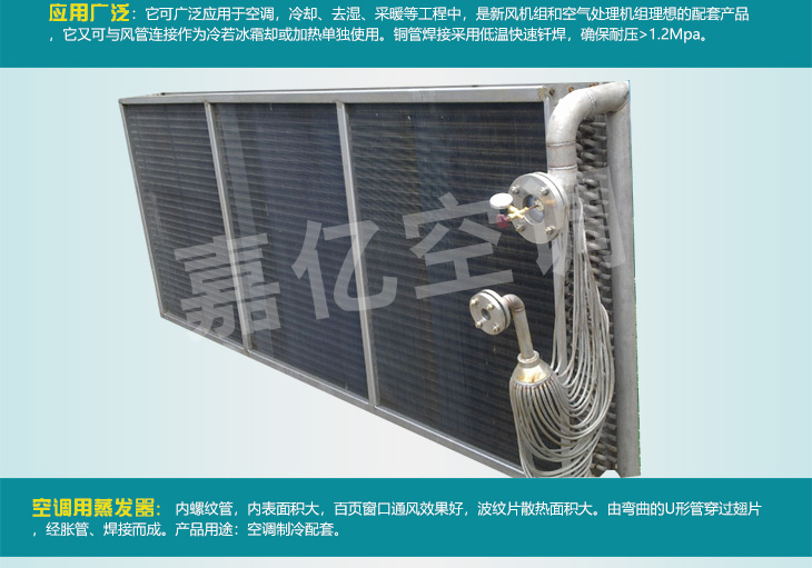 您好!欢迎来到靖江市嘉亿空调设备制造有限公司官网! 表冷器系列 、加热器系列 、不锈钢蒸发器 、冷凝器 、 生产厂家