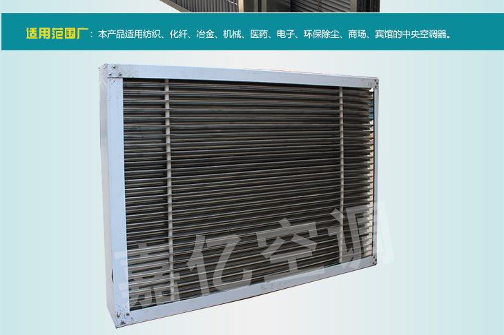 您好!欢迎来到靖江市嘉亿空调设备制造有限公司官网! 表冷器系列 、加热器系列 、不锈钢蒸发器 、冷凝器 、 生产厂家