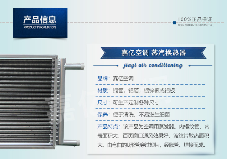 您好!欢迎来到靖江市嘉亿空调设备制造有限公司官网! 表冷器系列 、加热器系列 、不锈钢蒸发器 、冷凝器 、 生产厂家